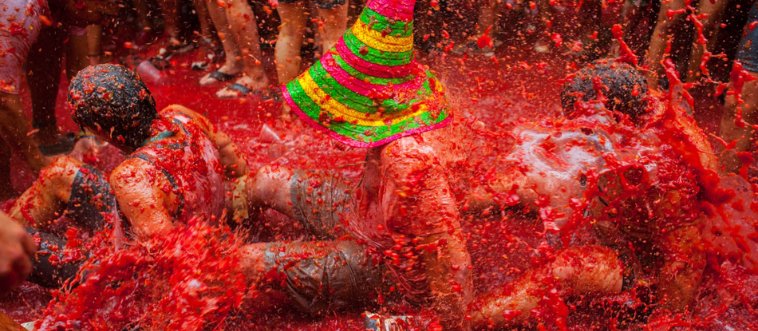 Where does the chaotic La Tomatina festival, famous for its massive tomato-throwing battle, take place?